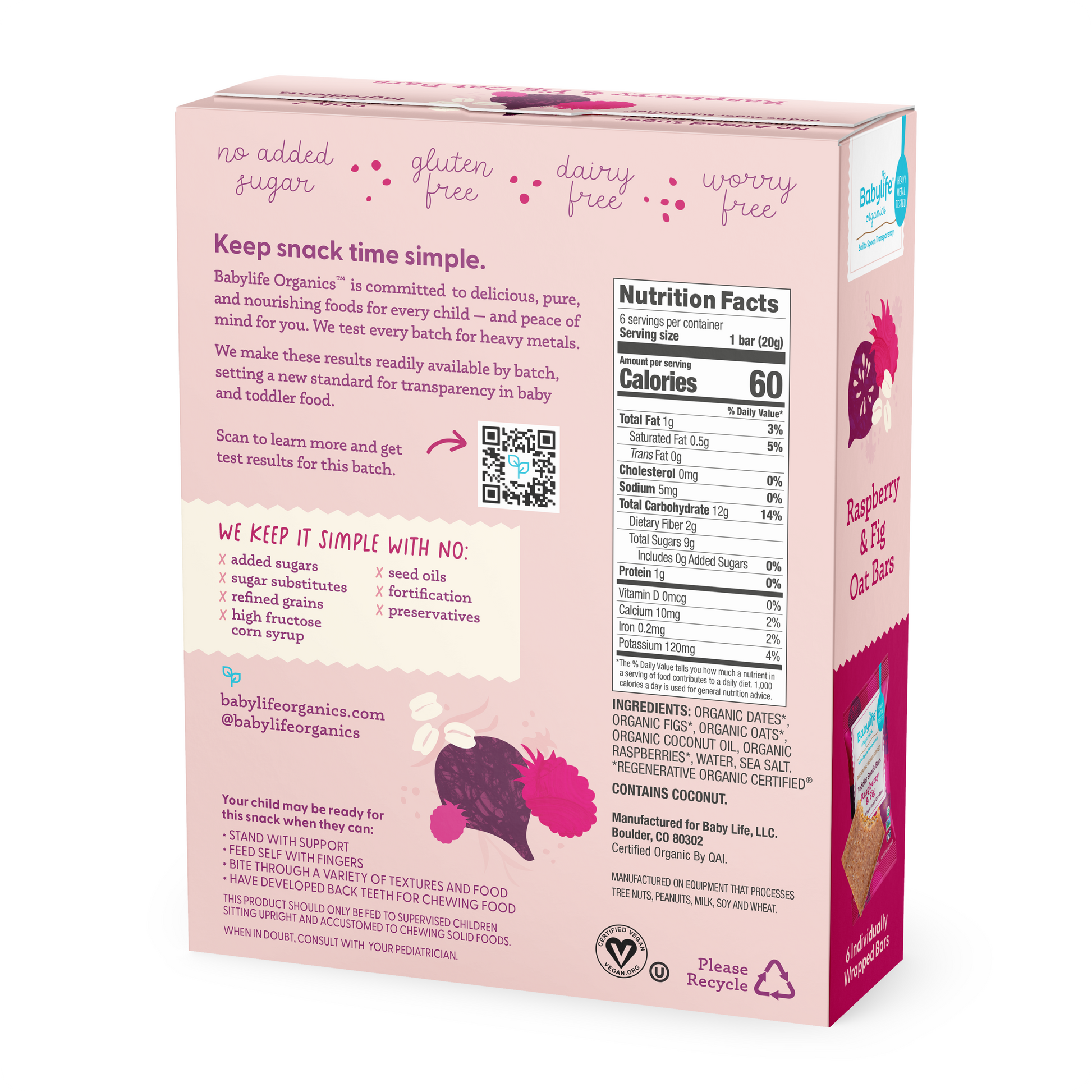 Raspberry keeps things bold, fig smooths it out, and oats make it filling enough to count as a real snack. Thoughtfully baked for little hands, big appetites, and parents who read labels without needing a magnifying glass. Sold as a 3-box set, each box containing 6 bars.