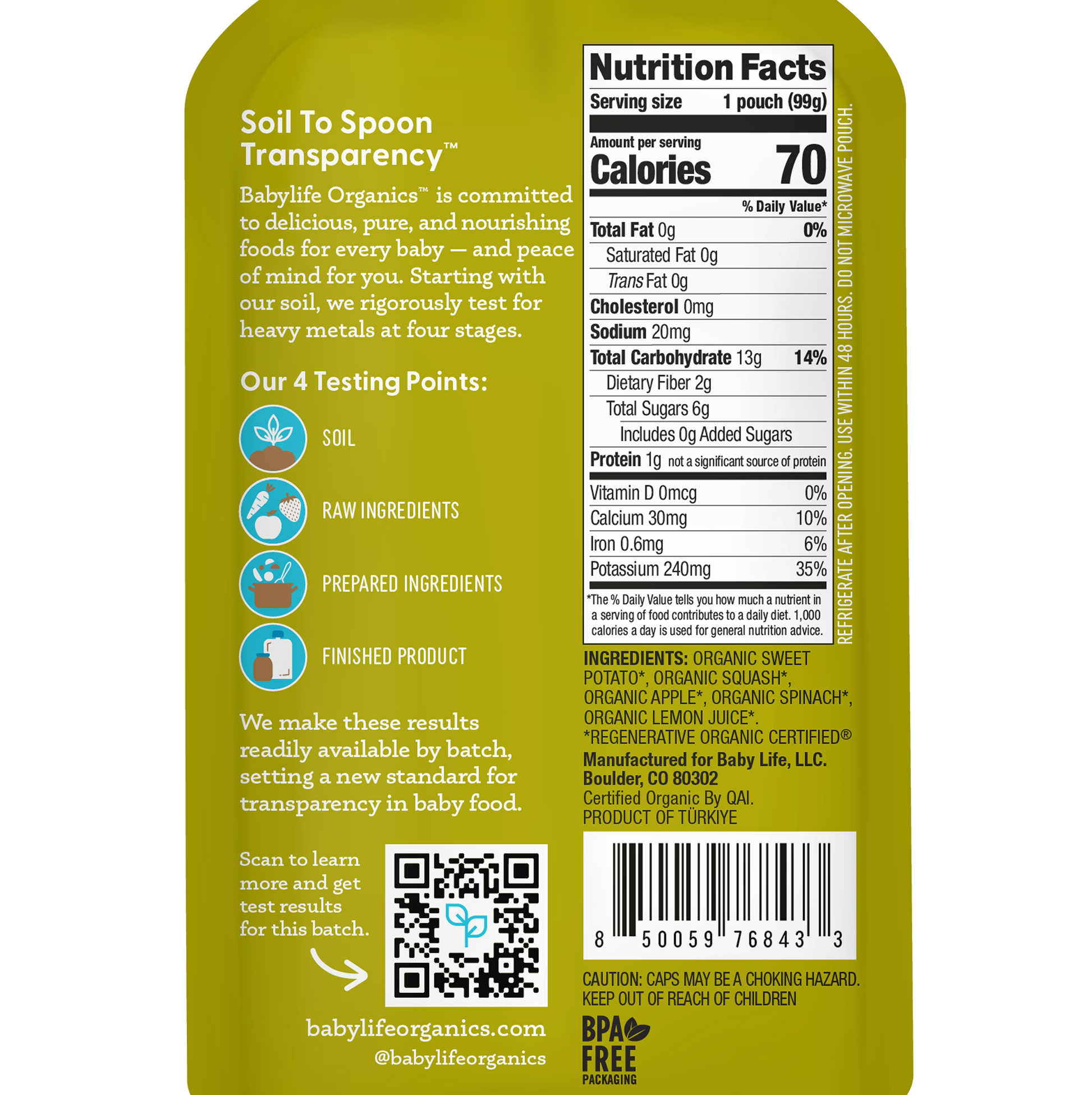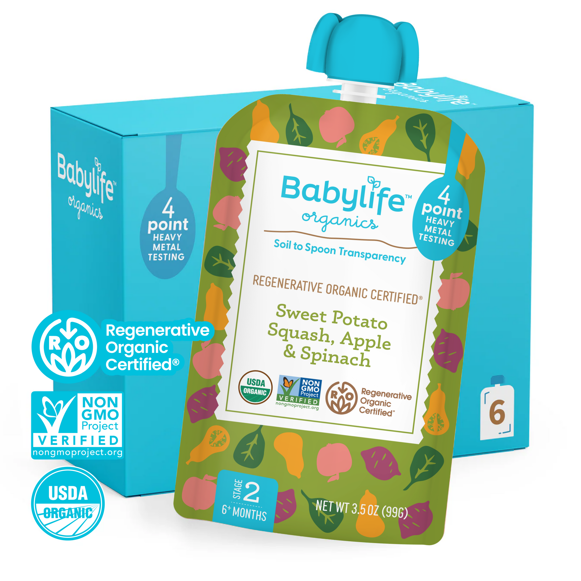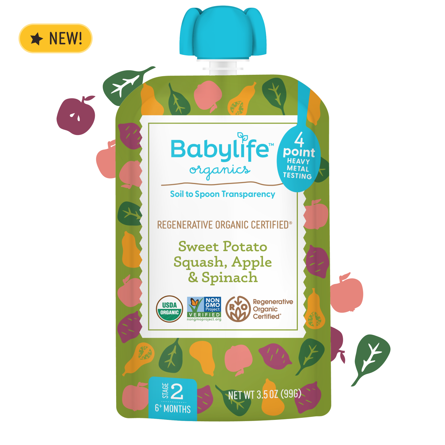 This is our unwavering commitment to safer, purer food for your baby. Soil to Spoon Transparency™ is a first-of-its-kind guarantee that includes Regenerative Organic Certified® farming and 4-point heavy metal testing with highly transparent results.